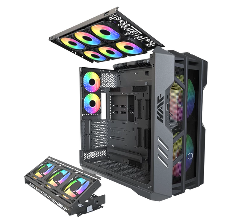 HAF 700 sports a fully meshed front panel, specifically designed to allow for maximum air intake. With the front panel structurally reinforced to prevent resonation caused by fan vibrations, systems can run smoothly at minimal noise levels.